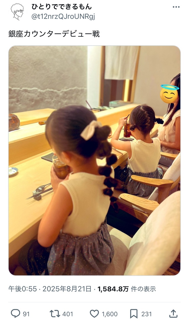 2ちゃんねる創設者・ひろゆき氏も「おいしいものを子どものうちに食べさせてしまうと、その子の人生の幸せを奪うことになるのでは。一番おいしいものを食べる店には、自分で稼いだ金だったり、大人になって奢ってもらったりして行くべきで、子どものうちは周りの子どもと同じものを食べていた方が幸せの総量は増えるのでは」と疑問を投げかける。