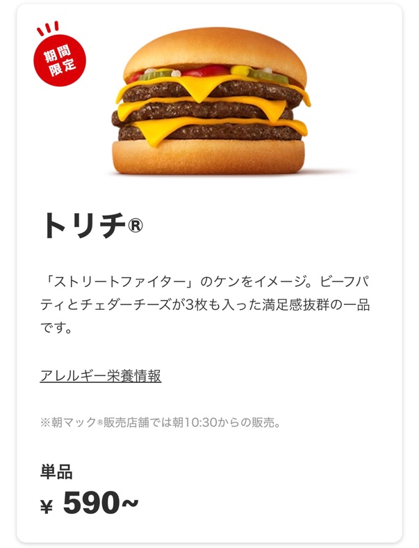ただのトリプルチーズバーガーを説明文だけでコラボメニューにしただと…