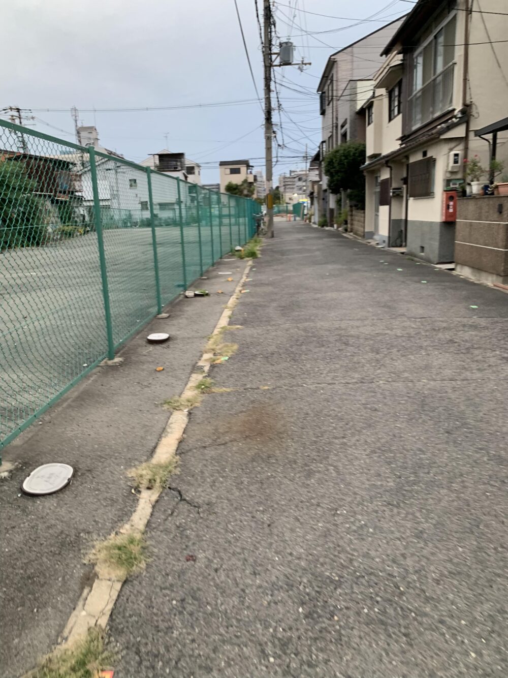 フェンスの所には以前長屋があって白いのは各戸の水道メーターかな?