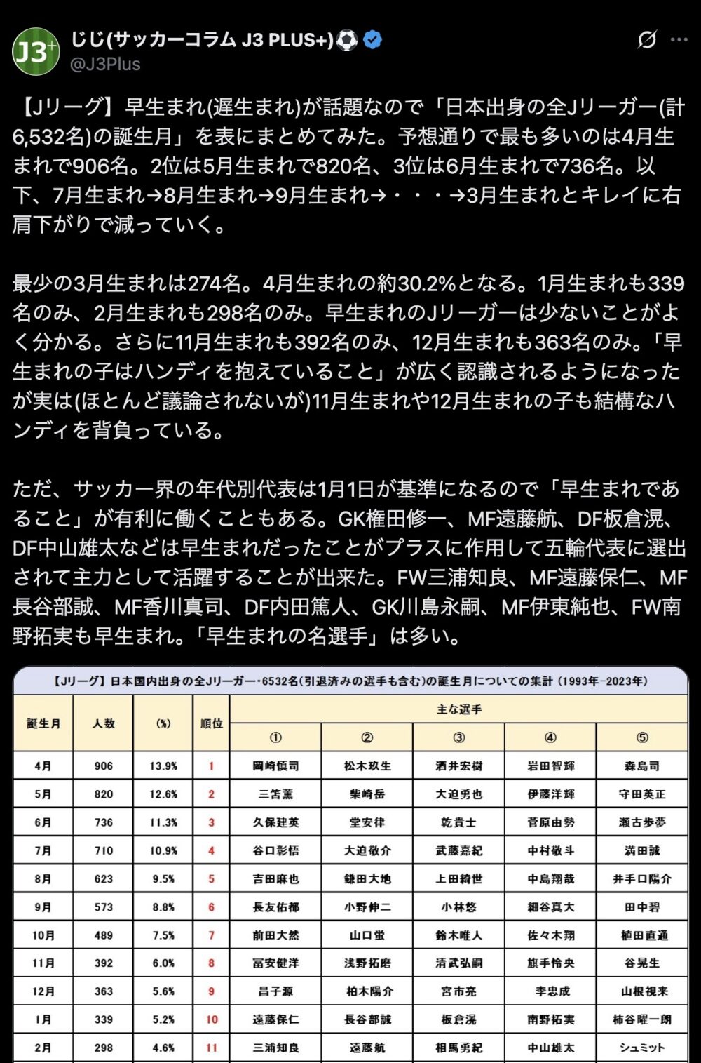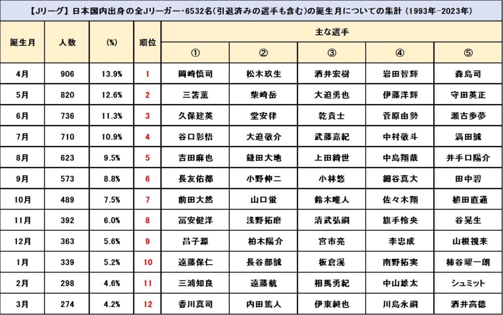 メンツ見ると3月生まれはよっぽど才能ある奴しかなれないってことか