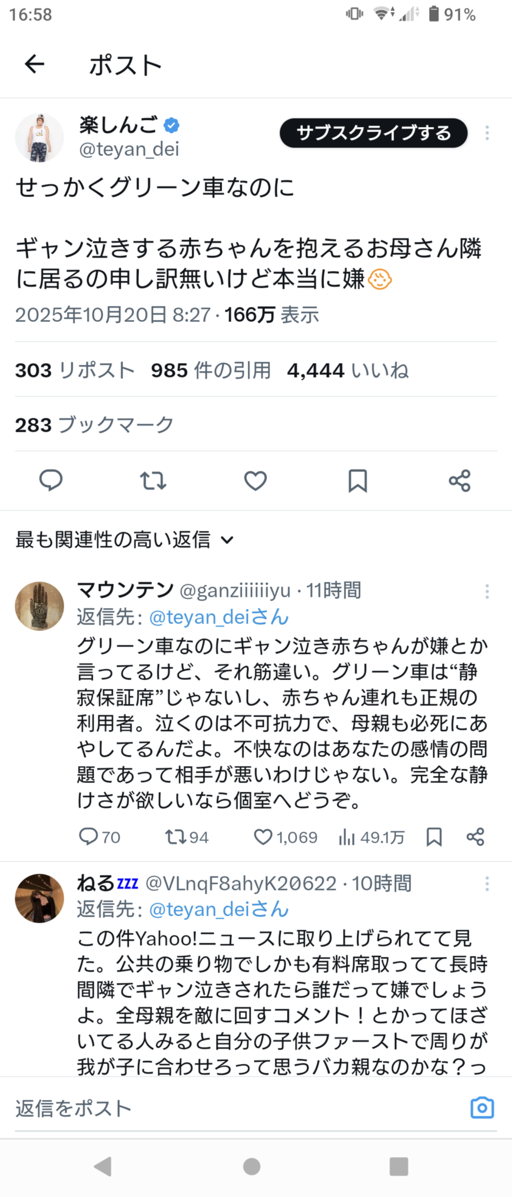 実際グリーン車でギャン泣きされたらウザいわな