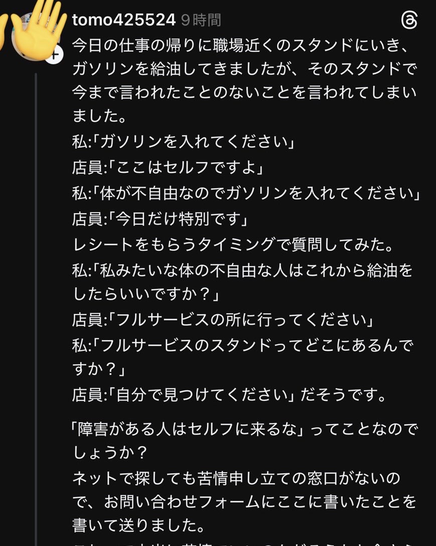 【悲報】まんさん「セルフスタンドに行ったら店員が給油してくれなかったんですけど💢」