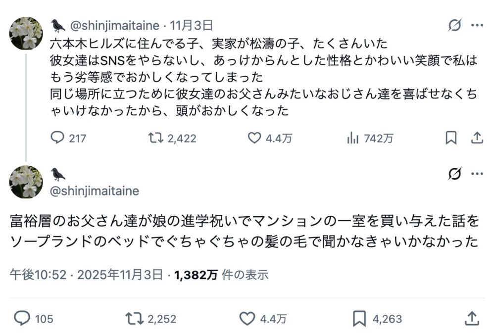 身体売りゃ同じステージに上がれる(上がるだけ)可能性があるのって残酷っちゃ残酷やな