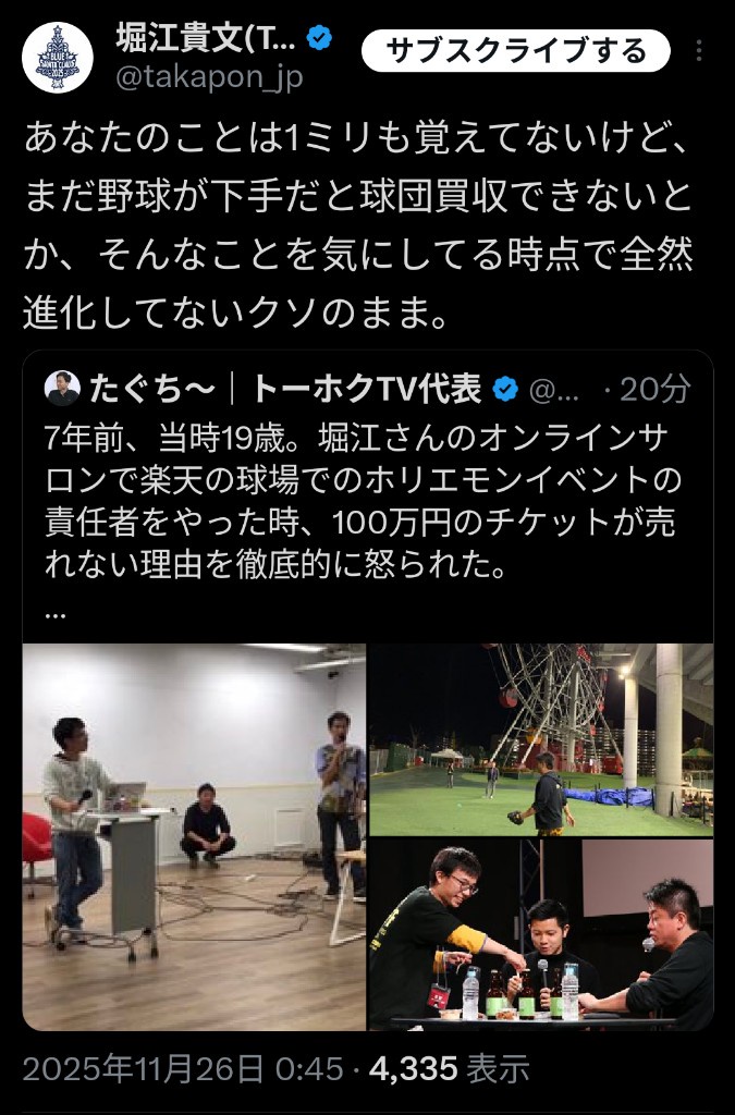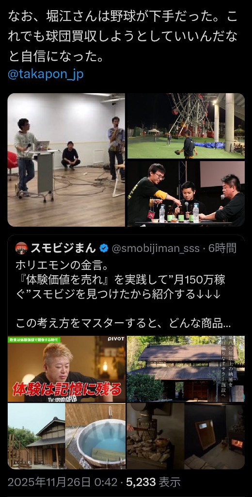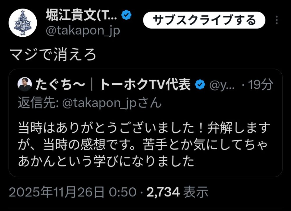 — 堀江貴文(Takafumi Horie、ホリエモン) (@takapon_jp) November 25, 2025