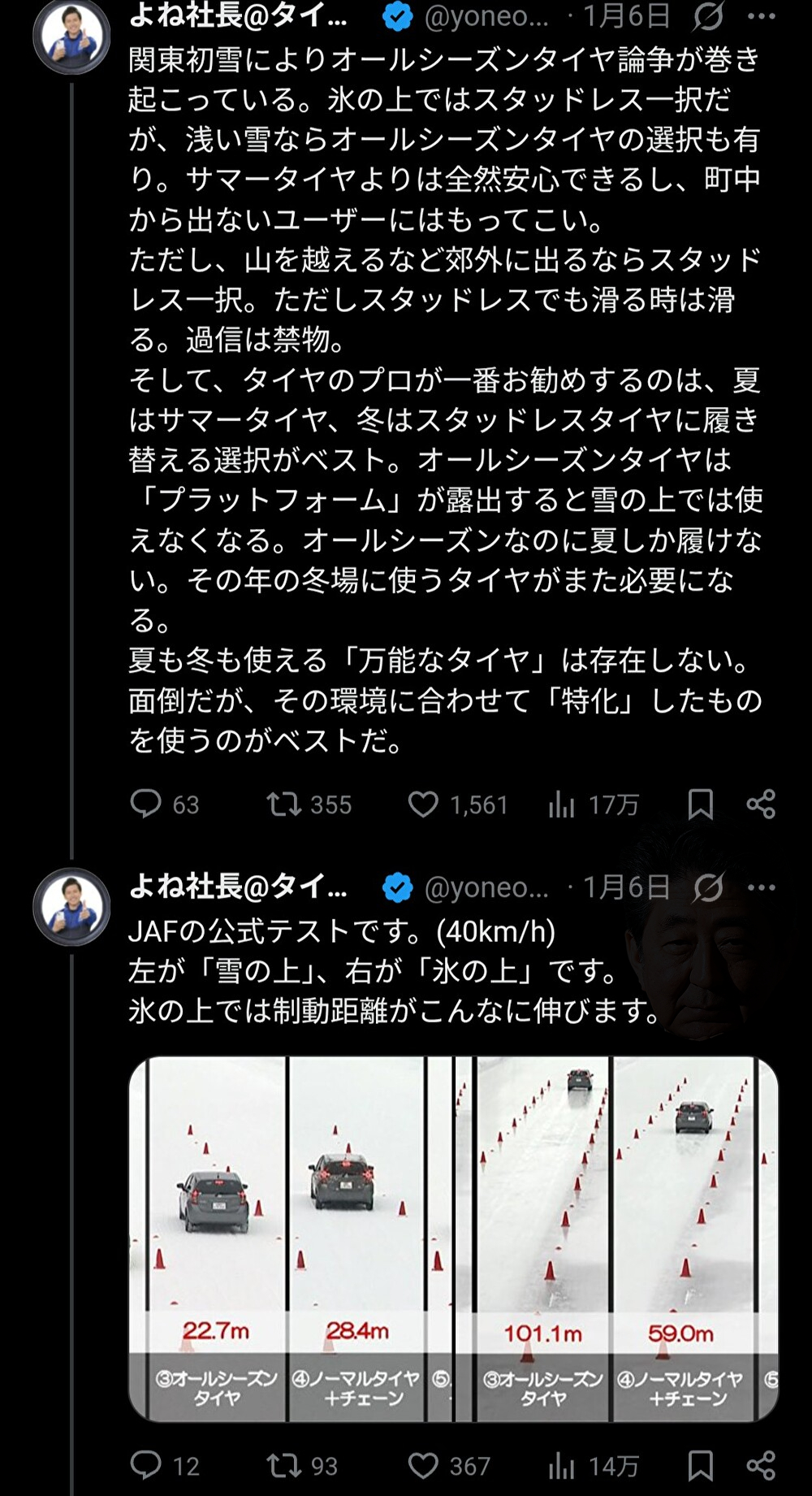 — よね社長@タイヤを転がす人 (@yoneoka_koji123) January 6, 2026