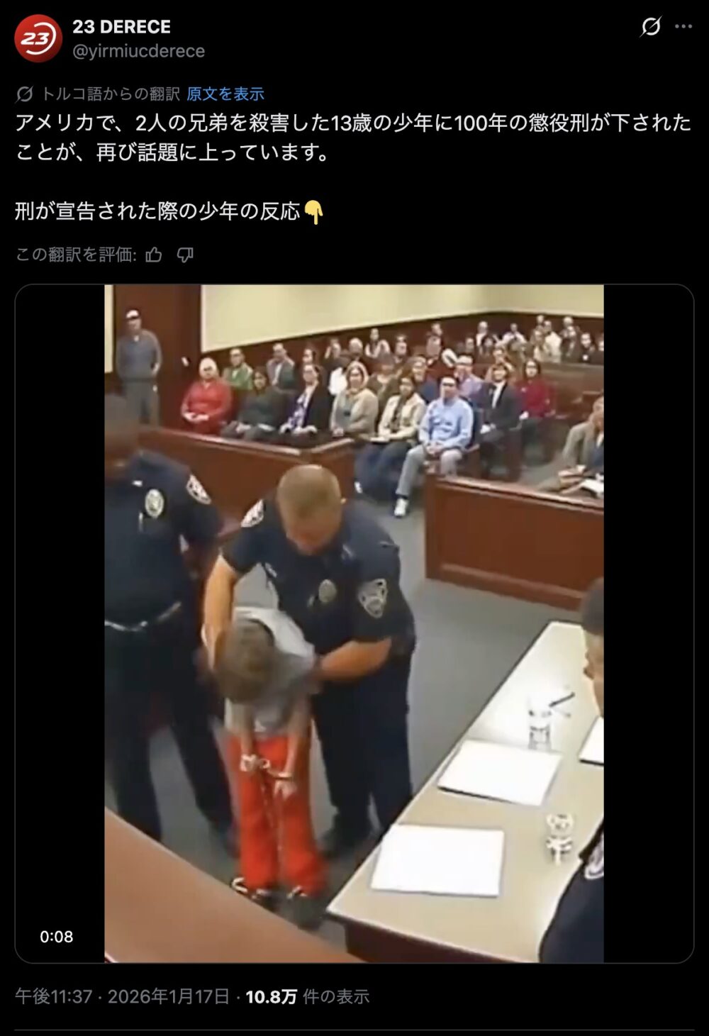 【動画】懲役50年の判決を受けた13歳の反応