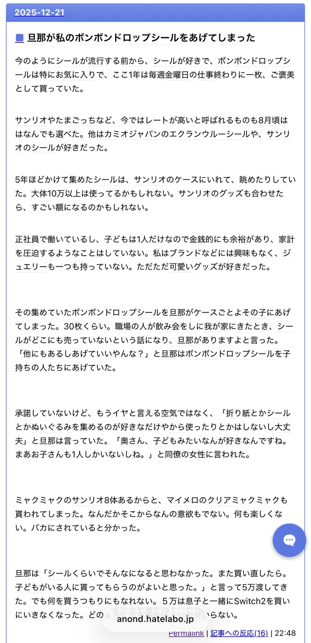 すげえ前やけどこれとは逆のパターンで旦那の大切にしてた鉄道模型を勝手に売った奥さんの話もあったよな