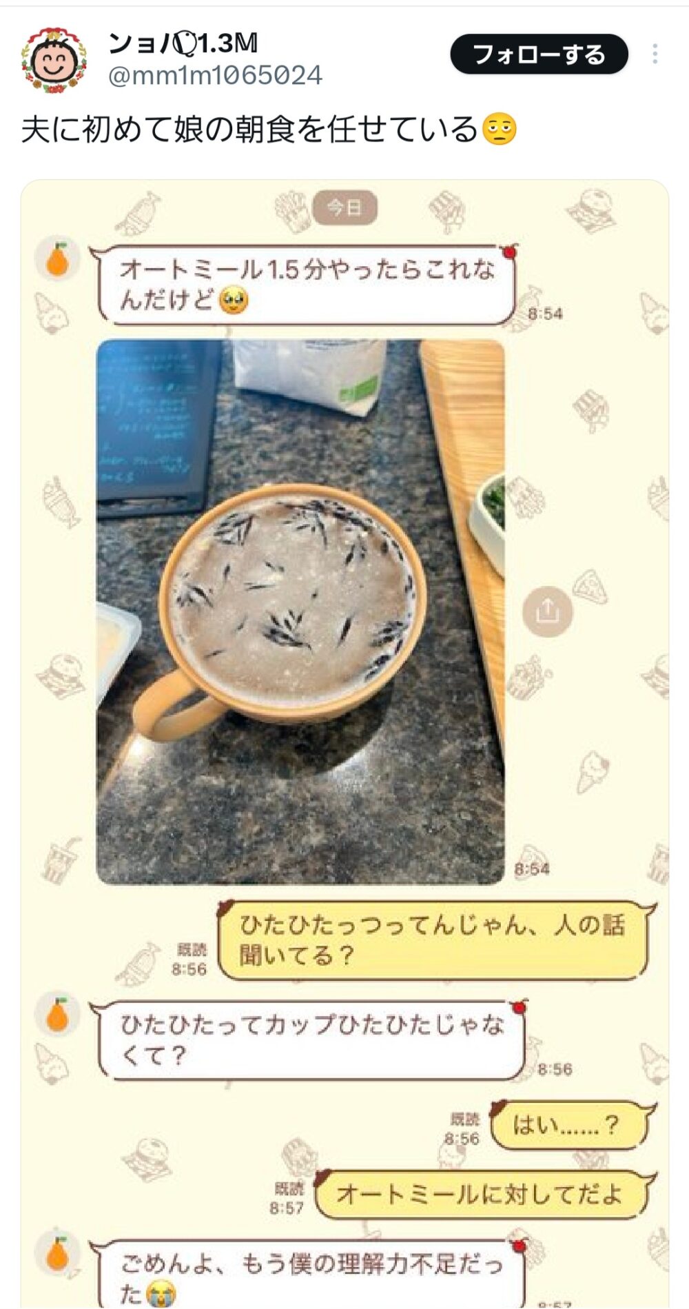 【画像】まんさん「夫に娘の朝食任せたらちゃんと作れなかった」?「夫が可哀想」まんさん「!?」