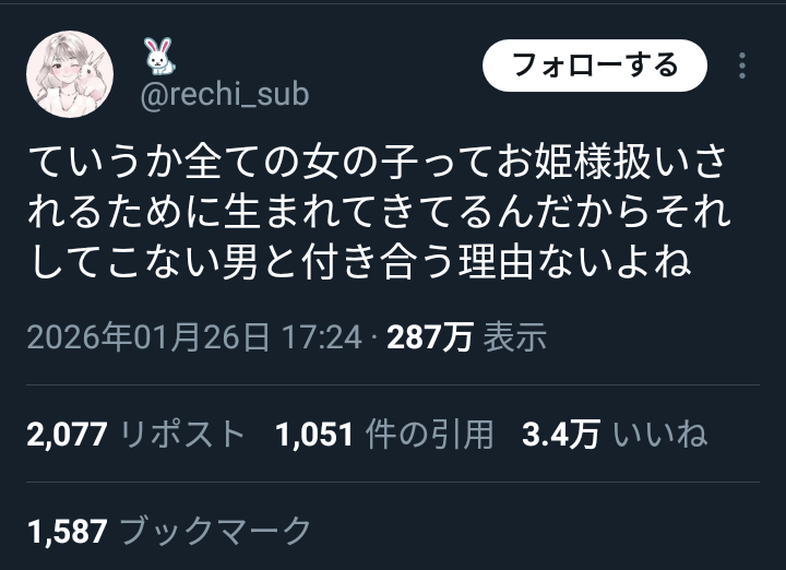 お姫様扱いしてたら女を舐めるなって言い出して社会に出てきたらまたお姫様扱いしろはどうしようもない