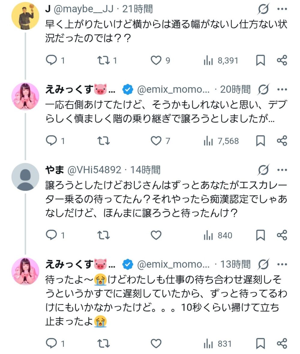【画像あり】女さん(体重100㎏超え)「エスカレーター乗ったら後ろからおじが詰めてきて怖くて大声で叫んだ!」