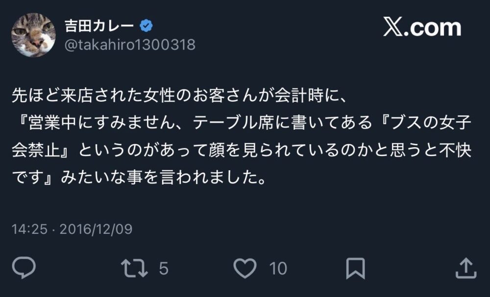 客の容姿をチェックしてるのですか、顔を見られながら食べたくないです、性別で差をつけているのですか、貼り紙を先に知っていたら入りませんでした等を伝えた https://t.co/wwpHpwldy5