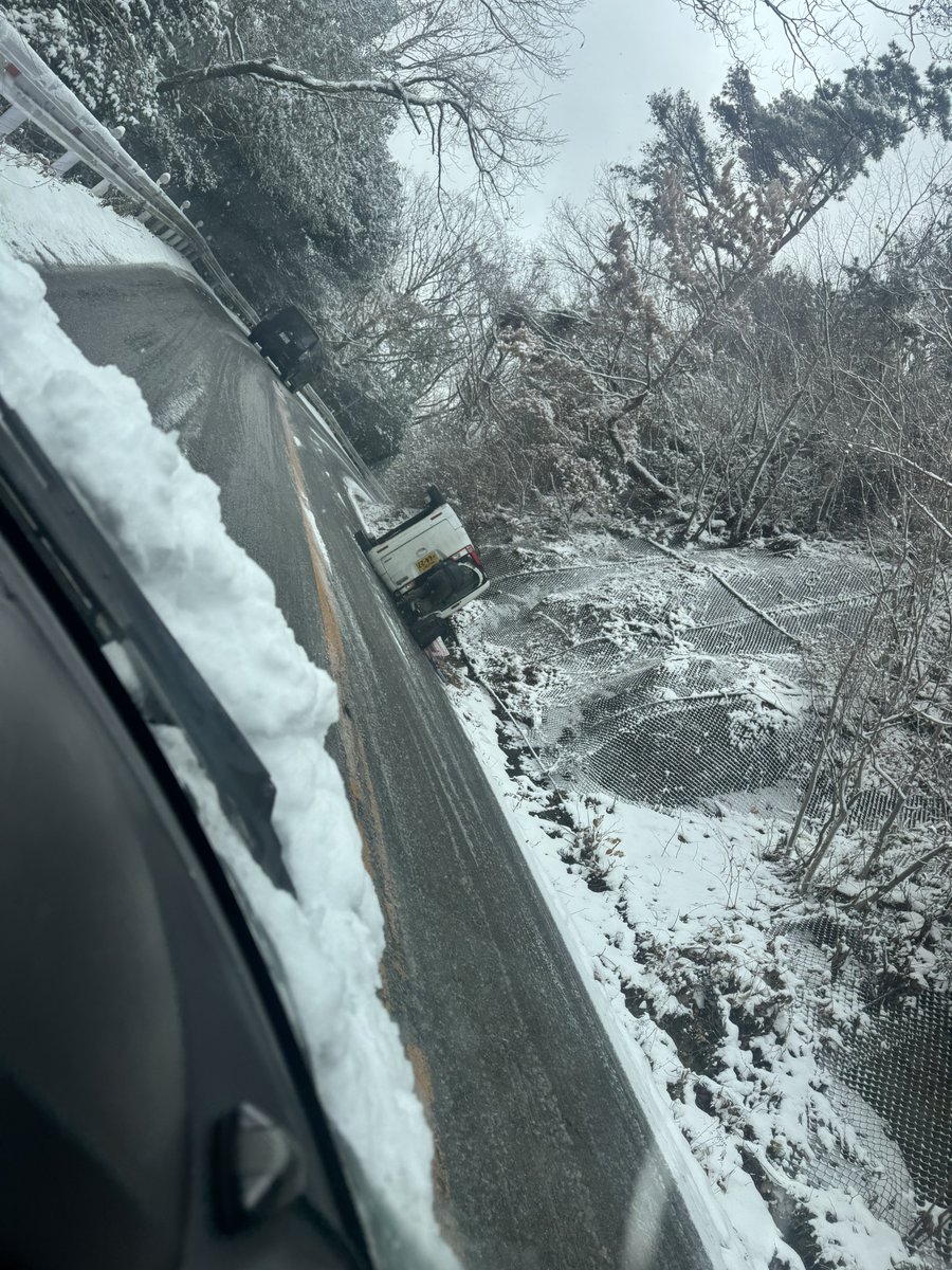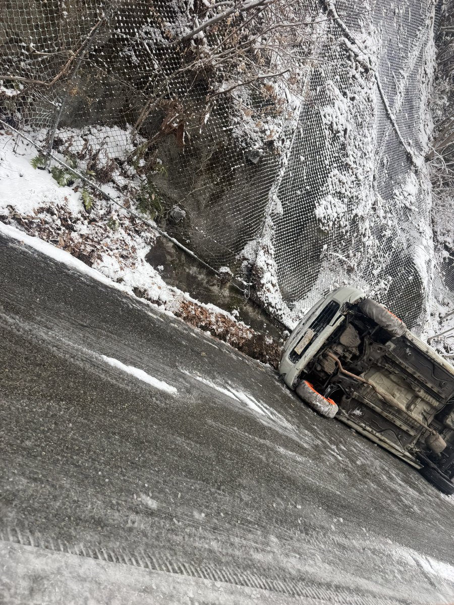 【画像】スノーソックス履いて雪山にやって来た軽自動車さん、見事に横転する