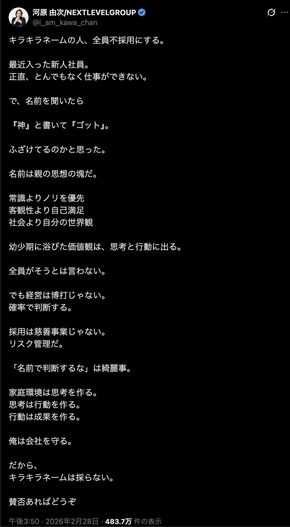 キララが面接に来たら落とすのか?