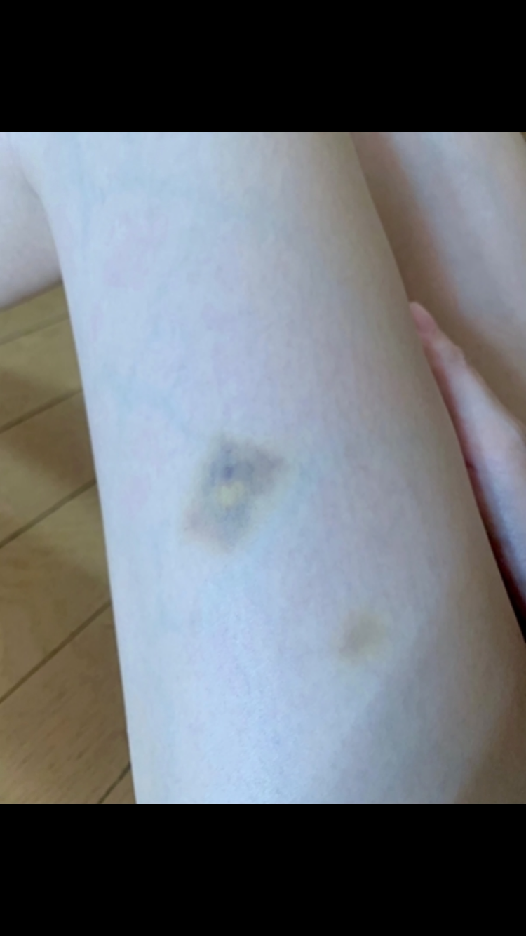 【画像】足に1000円札みたいなアザが出来てつらい←想像以上に千円札だと話題に