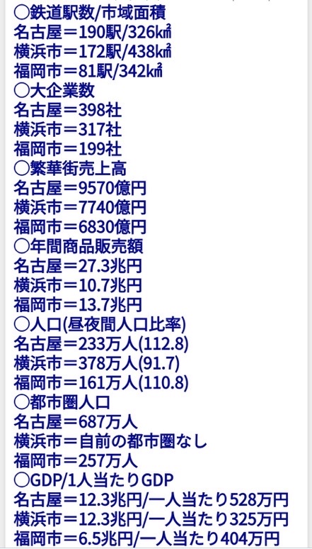 都市の規模は名古屋が三位