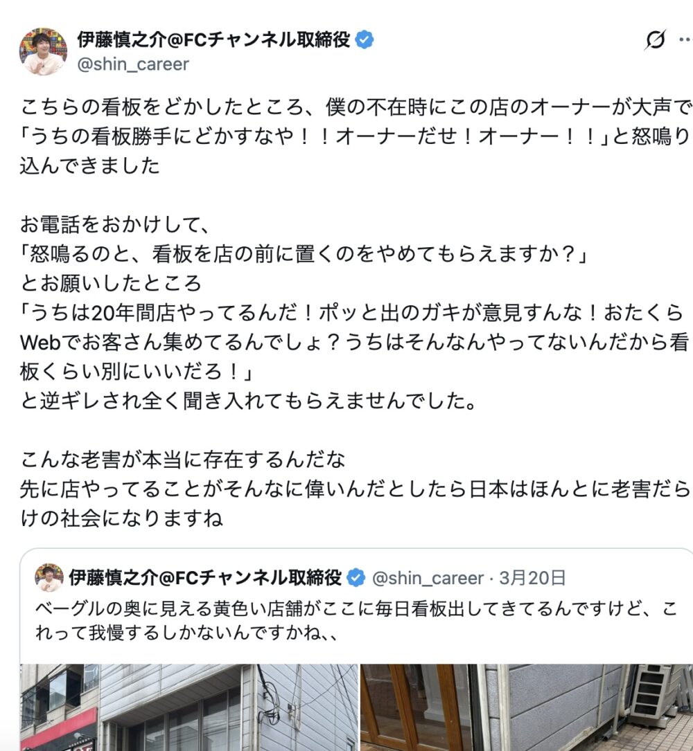 自分のベーグル店の前に出しとるわけちゃうし勝手にどかすとか論外やろ