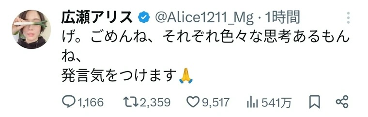 【速報】広瀬アリスさん、謝罪へ