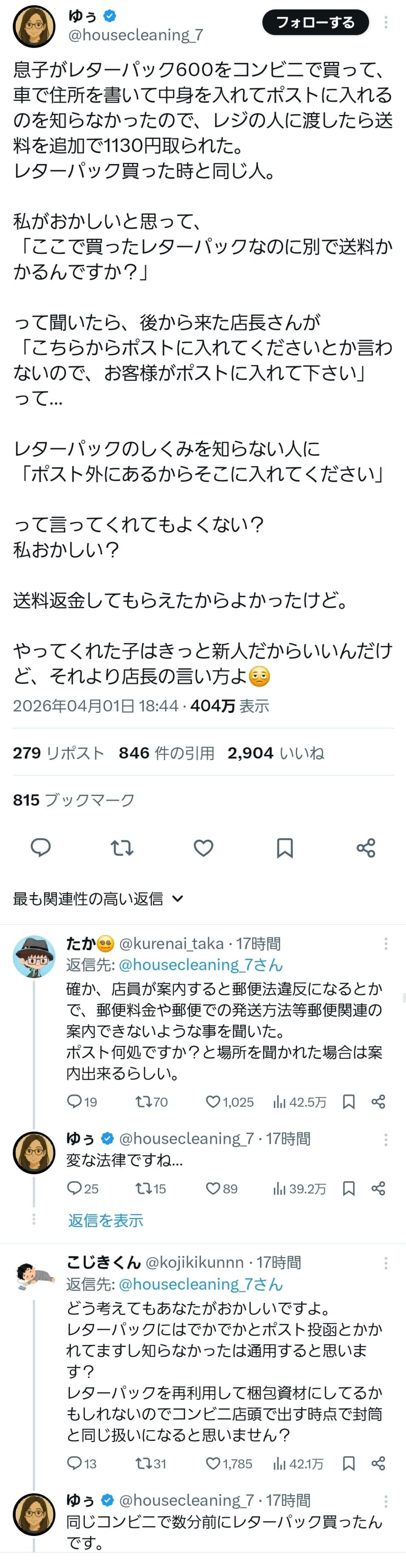 まあコンビニ店員もポストはこっちくらい言うたれや