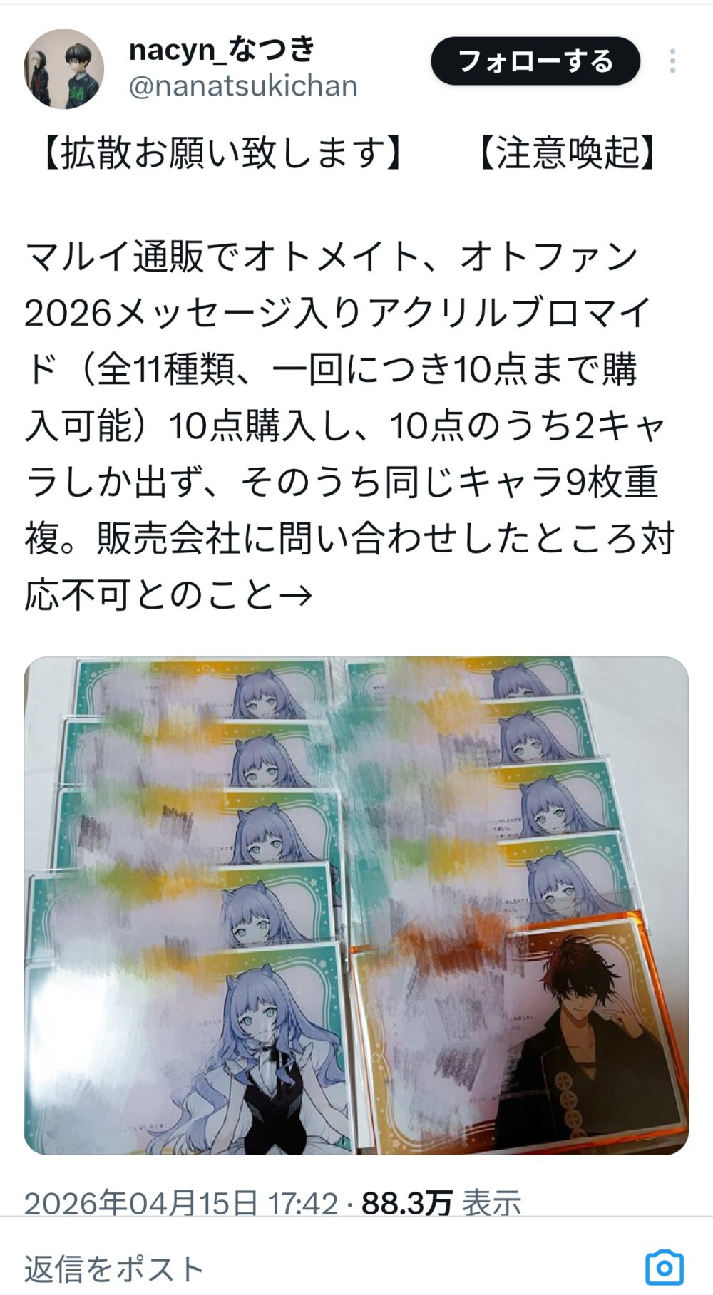 通販だとロットとかの関係でなんか必然的な結果を疑っちゃうよね