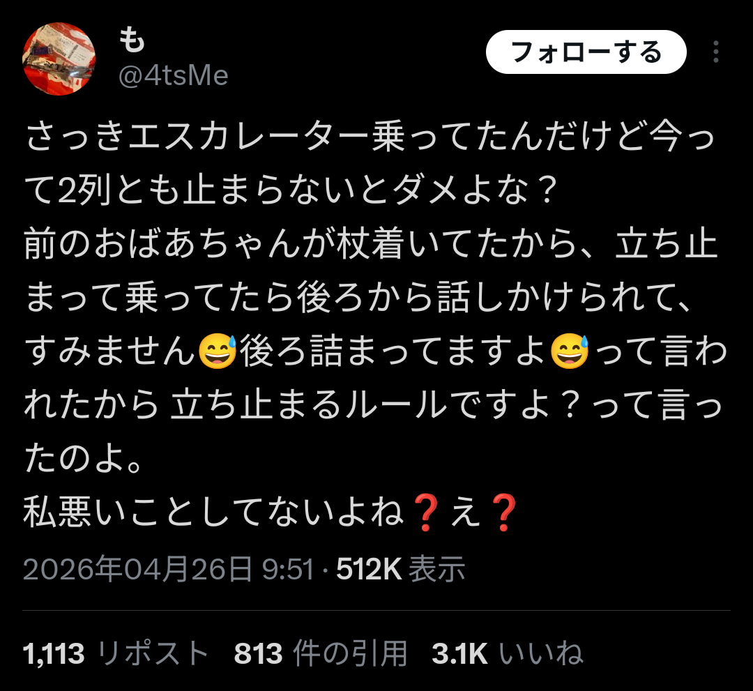 【画像】エスカレーターガチ勢、立ち止まる女子にブチギレ